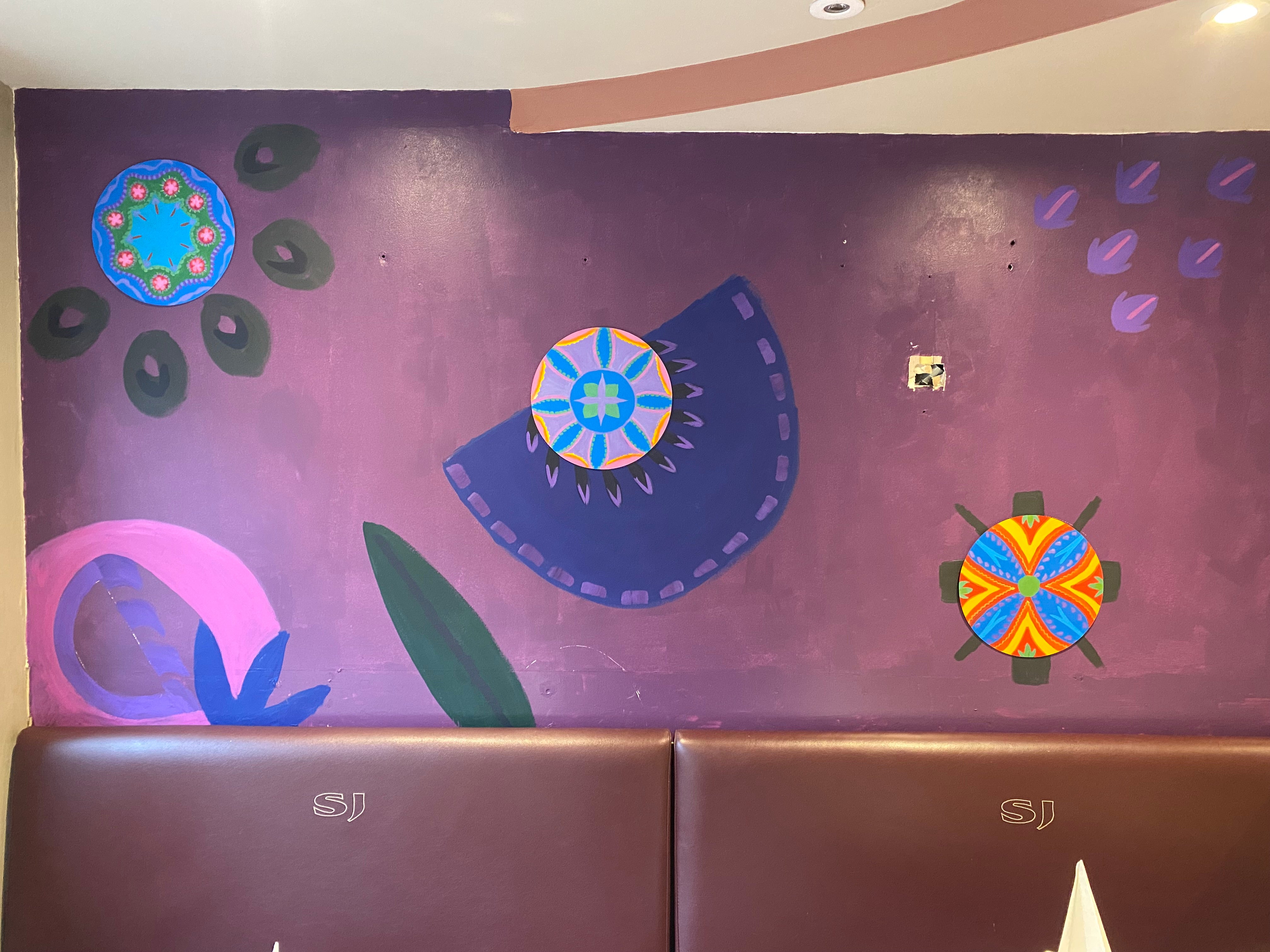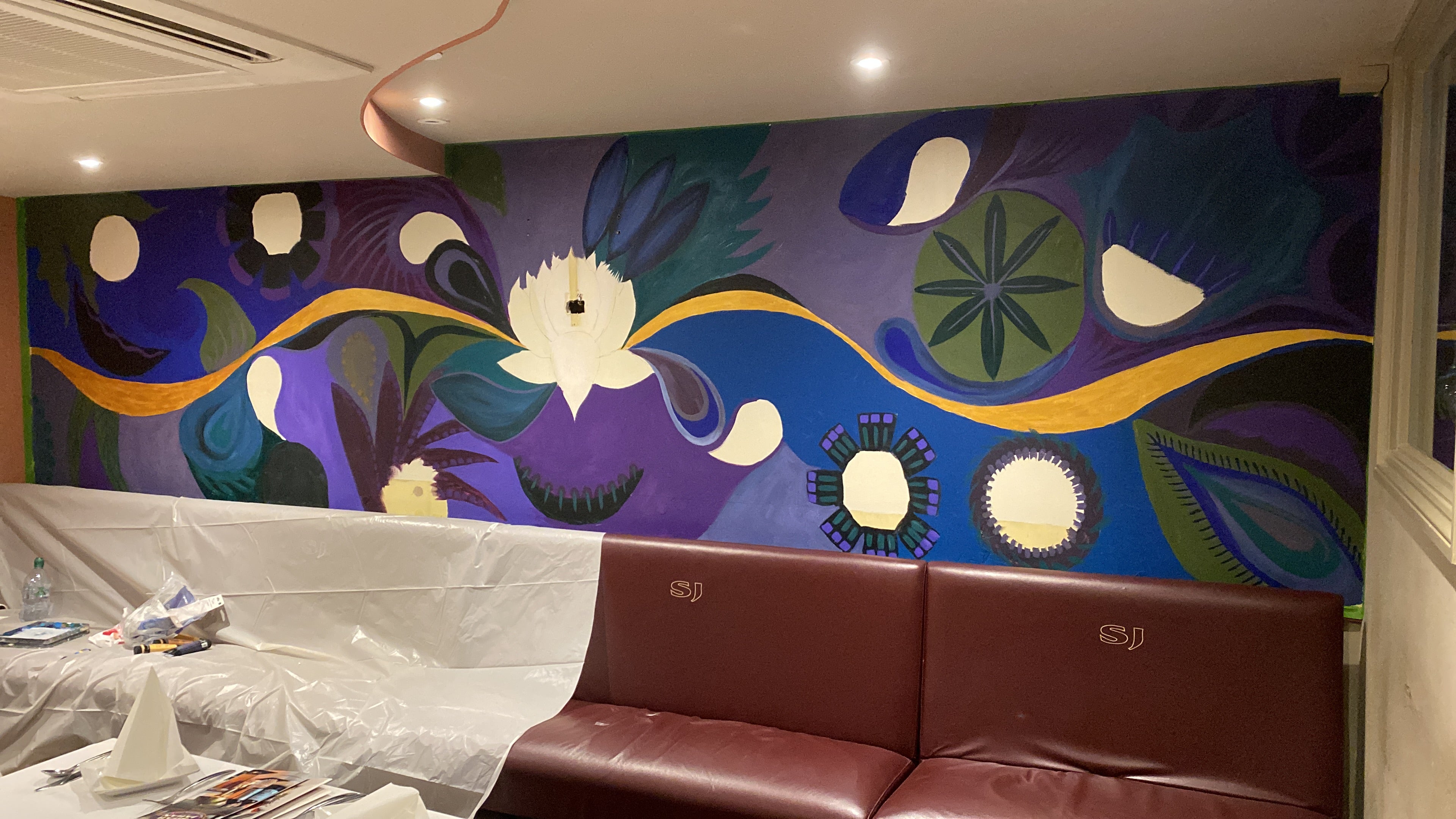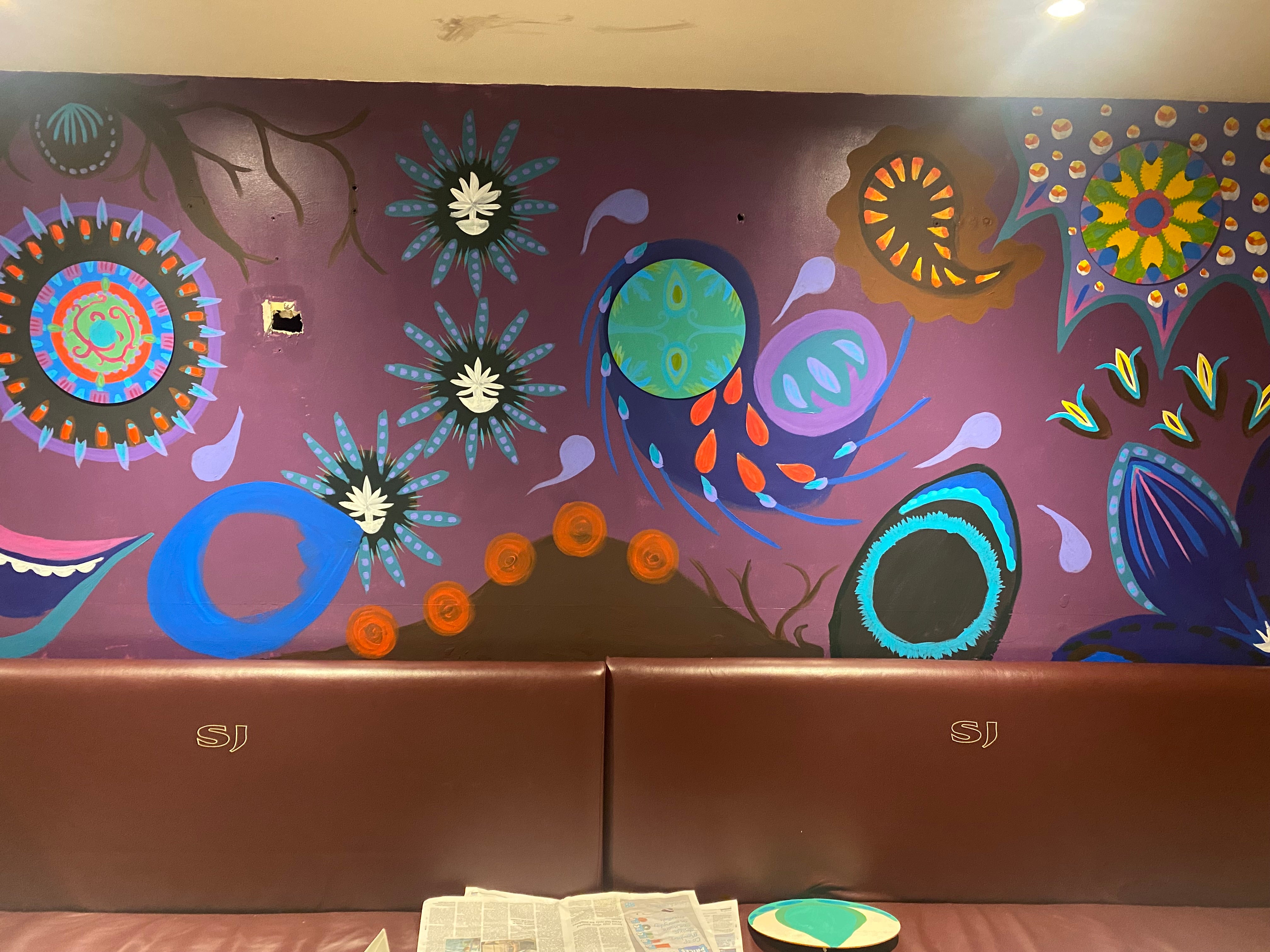 The Shah Jahan commissioned me to paint a bespoke mural on their two main walls in their Indian restaurant. After chatting with Ali, the owner, I produced a design which incorporated Indian illustrations as well a raised features using MDF to give interest and texture. It was great fun to do and I, and they, were very pleased with the results.
